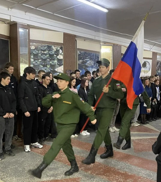 По традиции новая неделя в техникуме начата с церемониала торжественного внесения Флага Российской Федерации, исполнения государственного Гимна и мотивационной линейки.