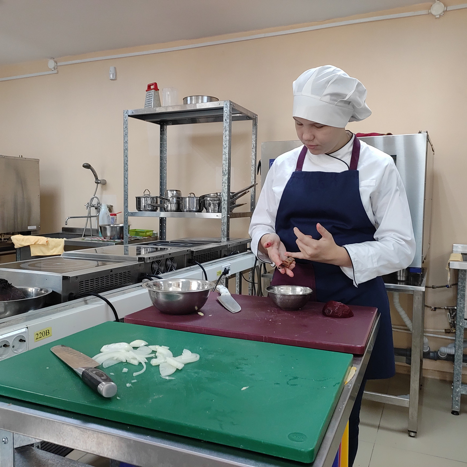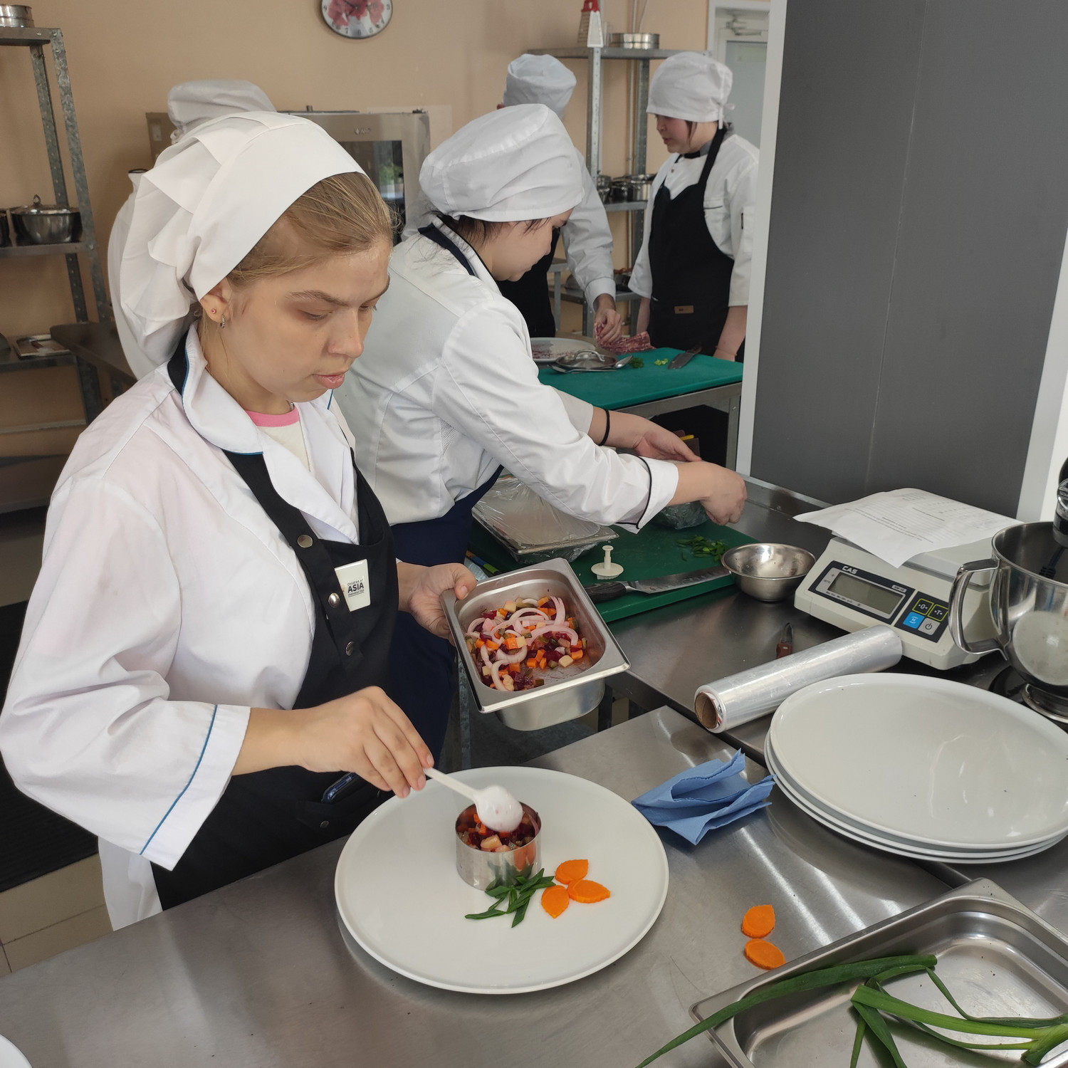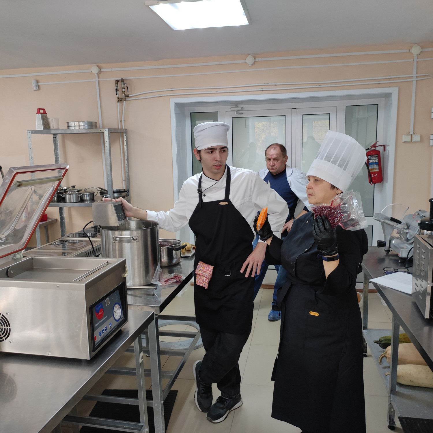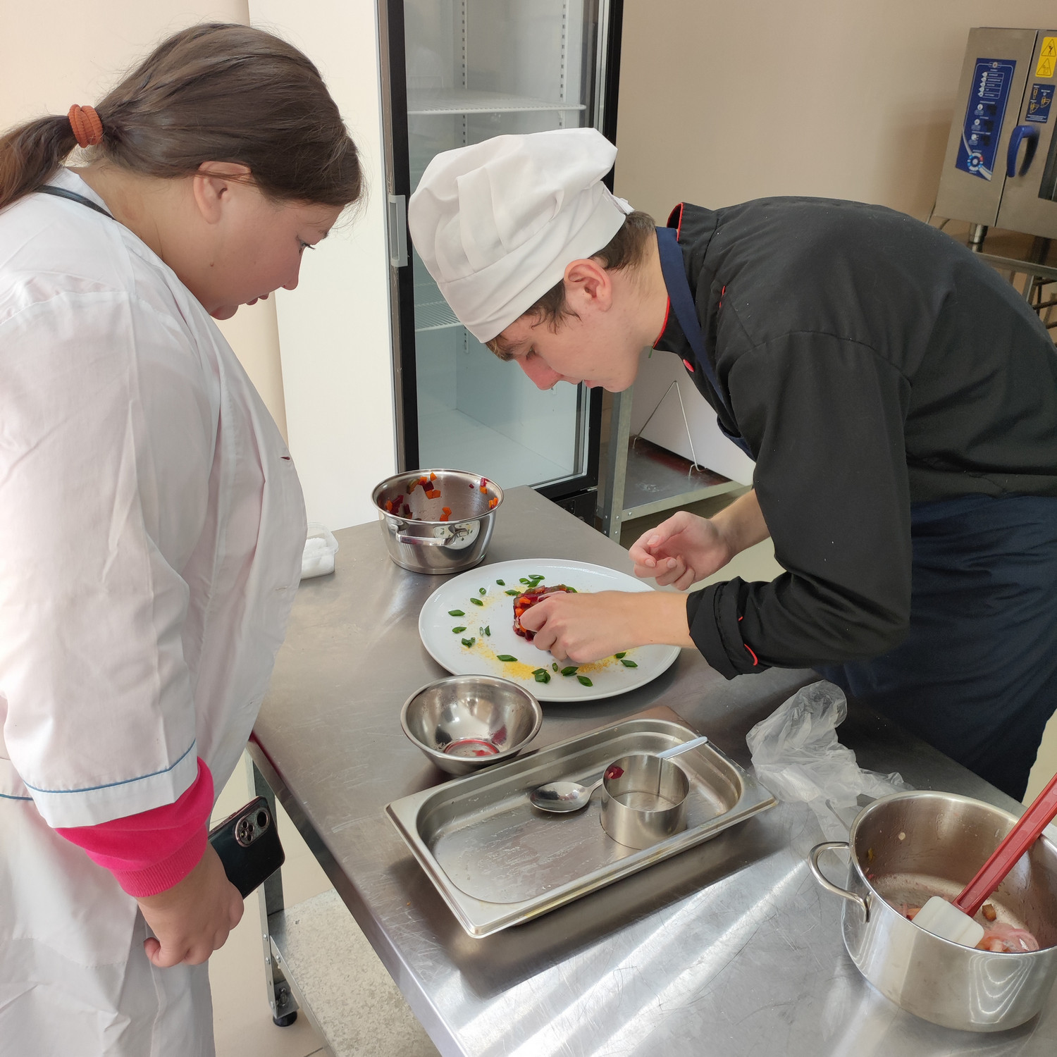У родителей была возможность погрузиться в образовательную атмосферу, понаблюдать за учебным процессом, узнать особенности профессионального кухонного оборудования, с помощью которого уже с лёгкостью умеют работать их дети. Студенты готовили винегрет по новой технологии, и у родителей была возможность не только посмотреть за этим процессом и продегустировать готовые блюда, но и стать членами комиссии и рассказать свои впечатления о новой технологии. Эти данные студенты используют для своего проекта.