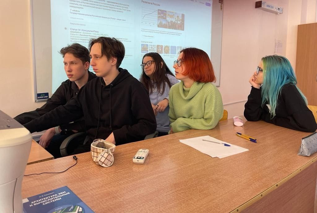 От нашего техникума в олимпиаде принимала участие команда из 402 группы в составе 5 человек. Студентам было необходимо на время в форме интерактивных заданий назвать основные принципы устройства государства, определить субъекты государственной власти, обозначить механизмы её реализации, а также распределить по видам права и обязанности гражданина.