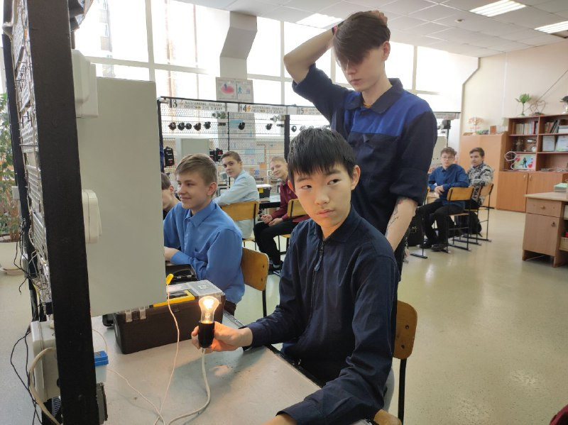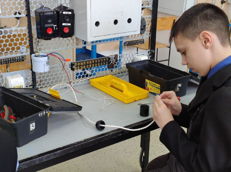Восьмиклассники посетили мастерскую, где проходят практику будущие электрики нашего техникума. Мастер производственного обучения Андрей Владимирович Кирюшин провёл для школьников мастер-класс, на котором ребята смогли попробовать себя в роли электрика. Ученикам представилась возможность узнать на практике, как устанавливается розетка и подключается лампа накаливания. Все действия происходили под чутким контролем педагога и с помощью ребят, получающих специальность «Техническая эксплуатация и обслуживание электрического и электромеханического оборудования».