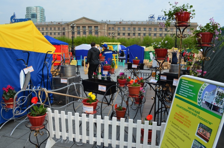 Кроме этого в мае коллектив техникума стал участником подобных ярмарок в Хабаровске и в Комсомольске. У хабаровчан особым спросом пользовались мангалы с элементами художественной ковки, подставки под цветы и плоскорезы Фокина, которые были мгновенно раскуплены . Не хватило всем желающим и мелкого сельхозинструмента - лопаток, рыхлителей, грабелек, которые были изготовлены обучающимися во время слесарной практики- лёгкие, аккуратные, красиво окрашенные- они были по достоинству оценены жителями Хабаровска- их покупали со словами восхищения и благодарности.