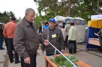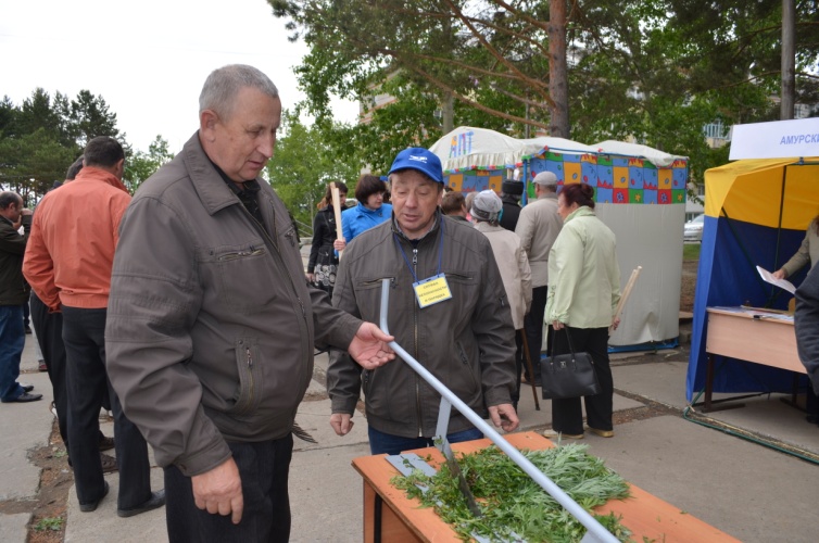 25 мая 2012 года КГОУ СПО «АПТ» участвовал в юбилейной выставке-ярмарке «Парад профессий», на которой были реализованы изделия, изготовленные руками обучающихся и сотрудников в учебно-производственных мастерских в течение учебного года. Это мероприятие краевого масштаба проводится во всех населённых пунктах, где расположены учебные заведения профессионального образования, уже двадцатый год. В нашем городе это мероприятие также носит традиционный характер, собирая большое количество амурчан, которые ценят высокое качество и приемлемую стоимость продукции. Как и в прошлые годы, неизменным спросом пользовались широкозахватные вилы, которые изготавливаются только в нашем учебном заведении уже более десяти лет и всегда продаются без остатка. Их конструкция и технология изготовления доведены до совершенства. Вилы позволяют облегчить труд по перекопке земельного участка и увеличить его производительность в несколько раз по сравнению с традиционным методом перекопки лопатой или обычными вилами и дают возможность избавиться от мотоблоков и мотоплугов. Не проходит интерес дачников к такому прогрессивному инструменту как плоскорез Фокина. В наших мастерских их изготавливают сотнями, и всё равно не удаётся удовлетворить всю потребность в этом инструменте. Эти инструменты изготавливаются из специального металла и поэтому служат верой и правдой садоводам и огородникам много лет. Новое изделие, которое ещё находится в стадии проектирования и разработки, но его опытный образец уже был выставлен на ярмарке - приспособление для резки травы- также привлекло внимание посетителей. С помощью этого станка легко и просто можно измельчать как свежескошенную траву, так и солому. Мы поняли, что дачники нуждаются в таком станке и запланировали поставить производство измельчителей травы на поток.