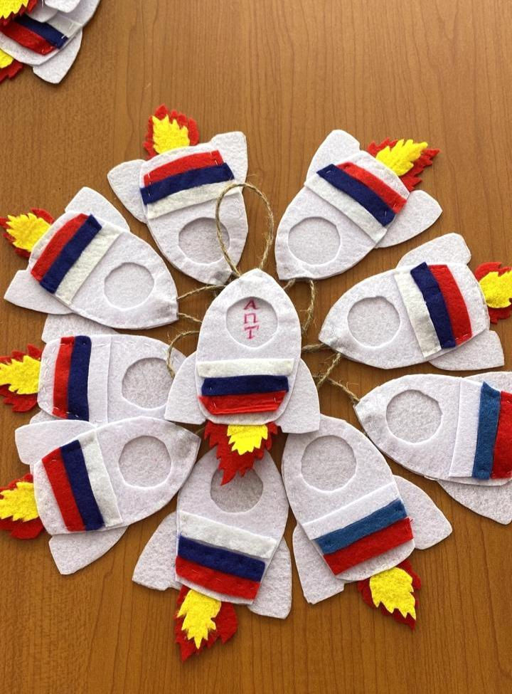 Наши студенты уже вовсю готовятся ко Дню космонавтики и изготавливают изделия из фетра в виде ракет в мастерской «Позитив»!