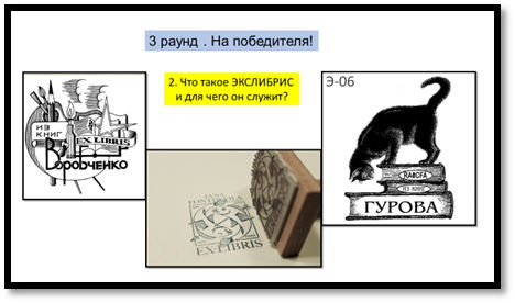 В день славянской письменности и культуры под таким названием состоялось библиотечное мероприятие в группе 113ПК. Первокурсники посмотрели небольшую видеоинформацию о библиотеках древности и главных библиотеках страны. Затем несколько подробнее обратились к истокам библиотек и книгопечатания в русском государстве. По материалам увиденного и услышанного обучающиеся поучаствовали в игре-викторине, напоминающей телевизионную «Свою игру».
