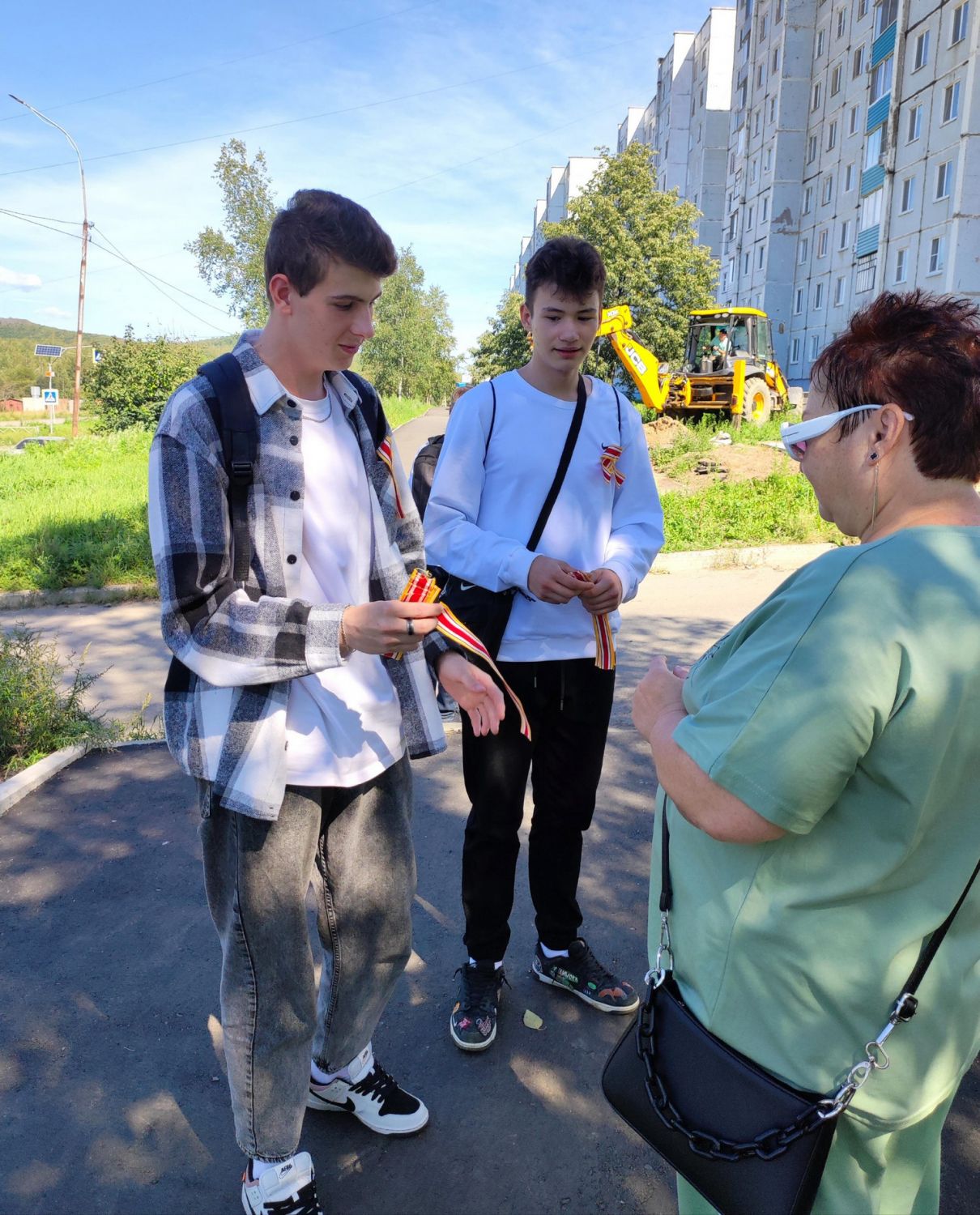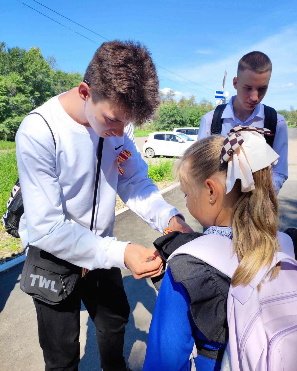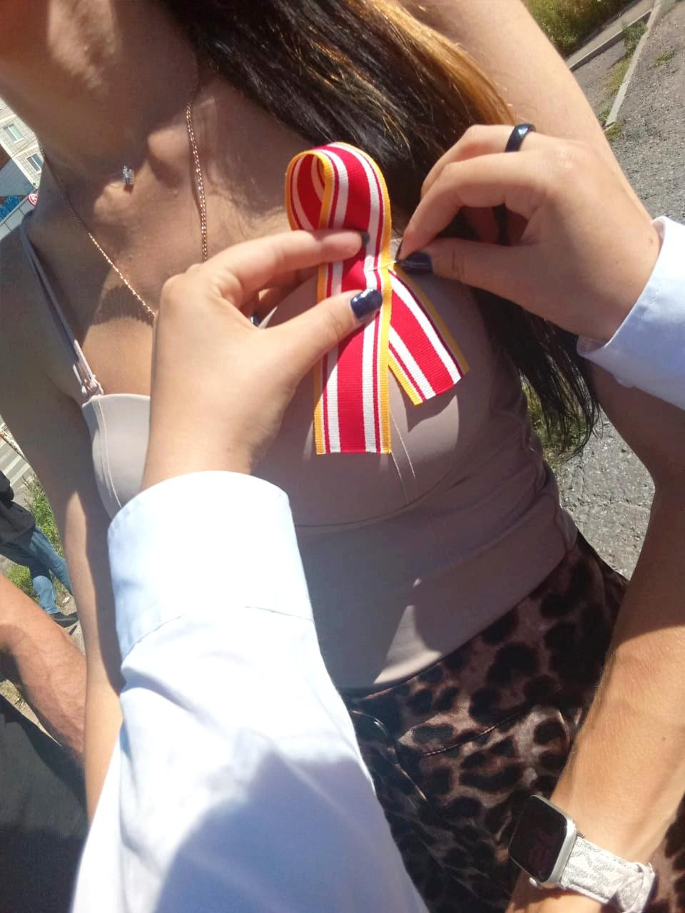 Сегодня участники Движения Первых присоединились к Всероссийской акции "Муаровая лента", раздавали ленточки жителям города и объясняли их значение.
