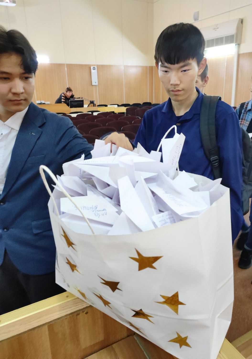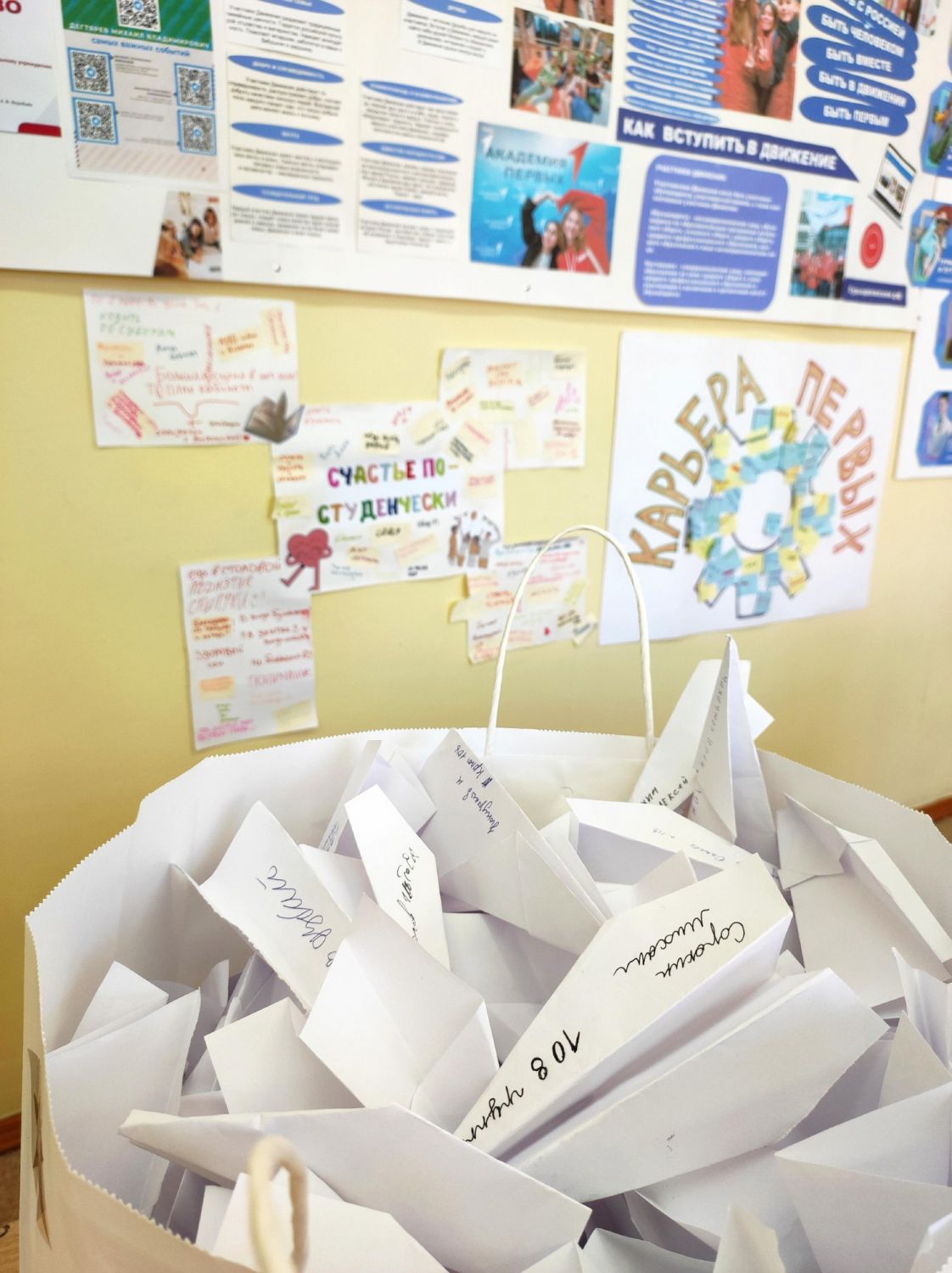 Совместно с Валерией Евгеньевной Волощук студенты написали на листочках свои надежды, мечты и пожелания, а затем сделали самолётики и отправили их в капсулу времени.