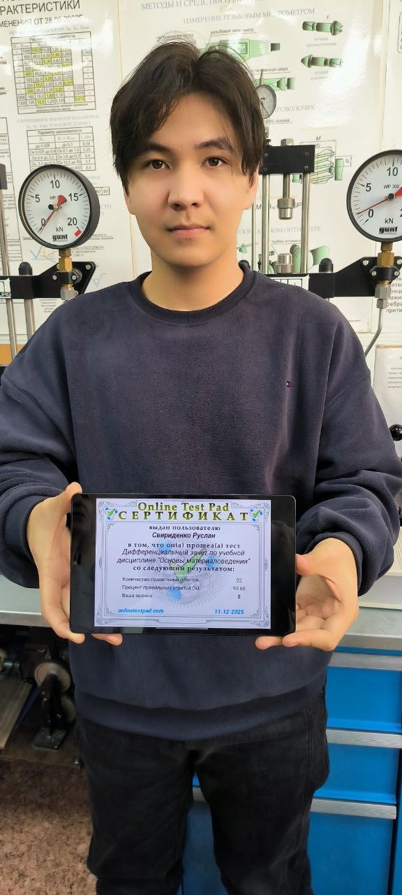 Также студенты выполнили тестовые задания по дисциплине 0ПЦ.05 Материаловедение, состоявшие из 21 вопроса. В честном поединке первое место с наибольшим количеством баллов занял студент гр. 203 ЭОО Парижев Артур.
