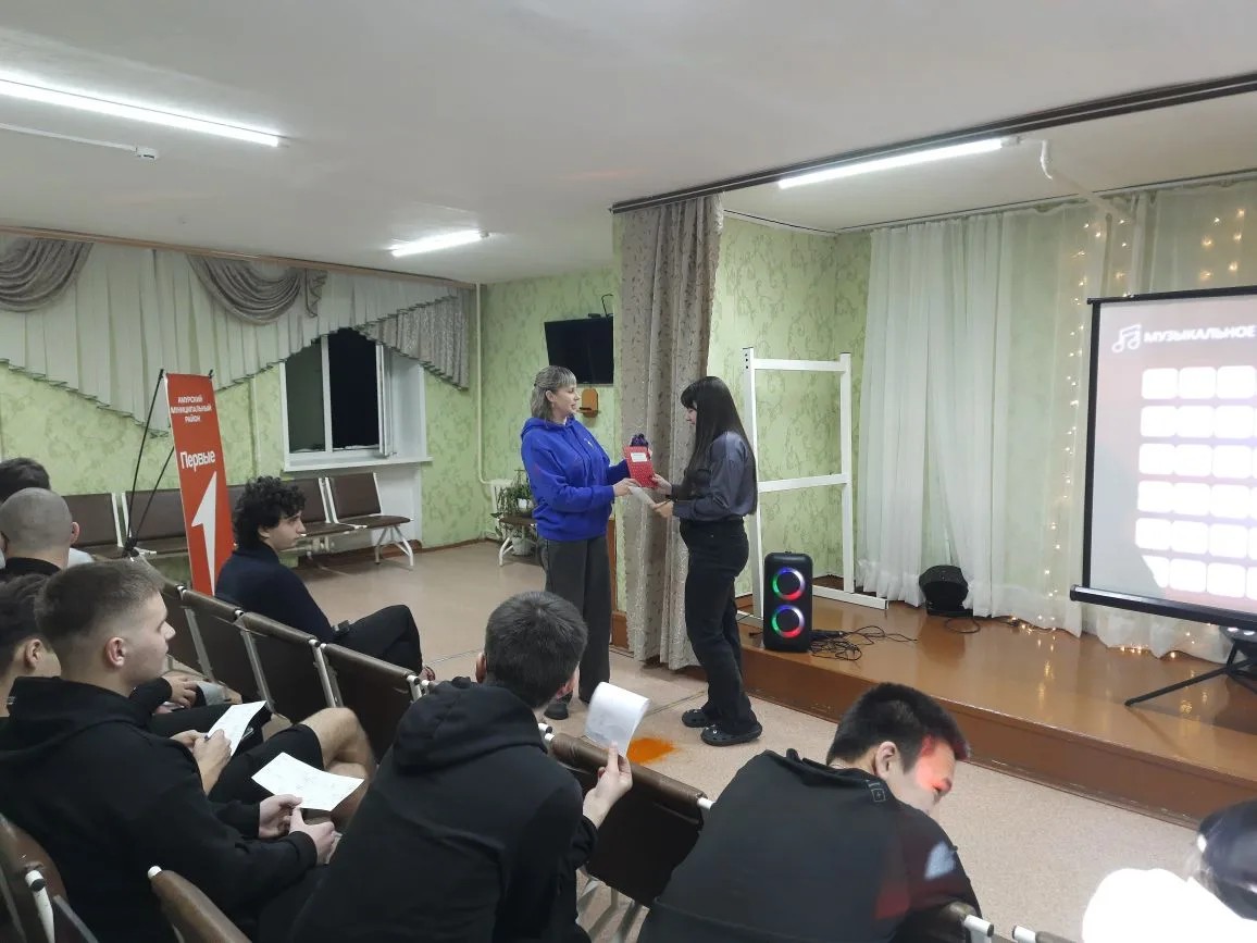 Необычный подарок приготовил районный отдел по молодежной политике и развитию спорта для студентов, проживающих в общежитии. К Дню российского студенчества Карева М. и Тараненко А. на два часа погрузили 40 юношей и девушек в атмосферу музыки и полюбившихся современных хитов в ходе игры «Музыкальное лото».