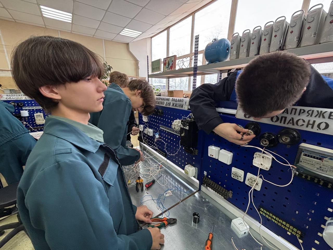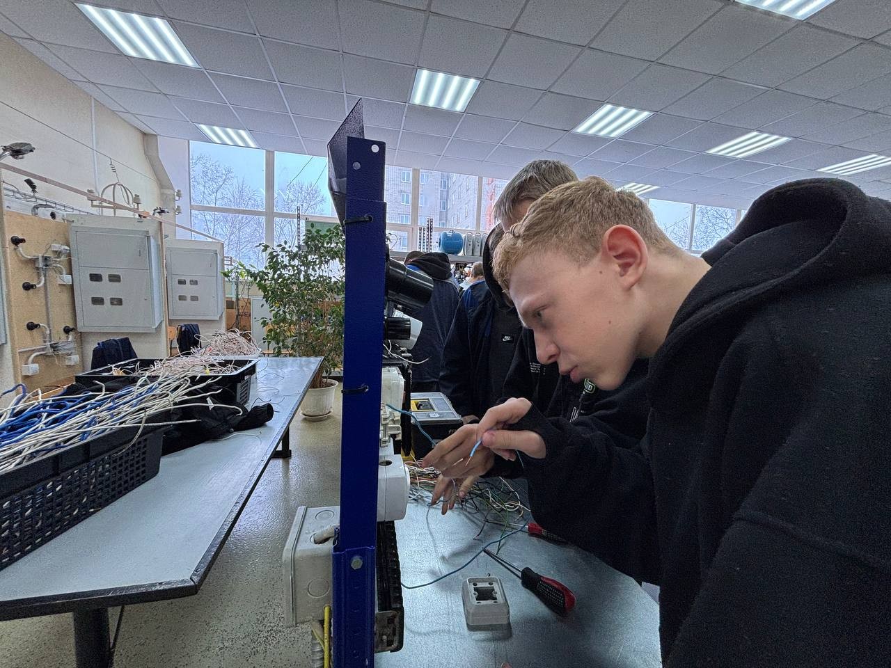 На протяжении всего занятия - школьников сопровождали и помогали справиться с заданиями амбассадоры Профессионалитета - студенты 2 и 3 курса, которые учатся на специальности «Техническая эксплуатация и обслуживание электрического и электромеханического оборудования (по отраслям), за что им отдельное спасибо. Вместе с ними школьники собрали схему подключения лампочек через два выключателя, что вызвало у них большой интерес к профессии и положительные эмоции!