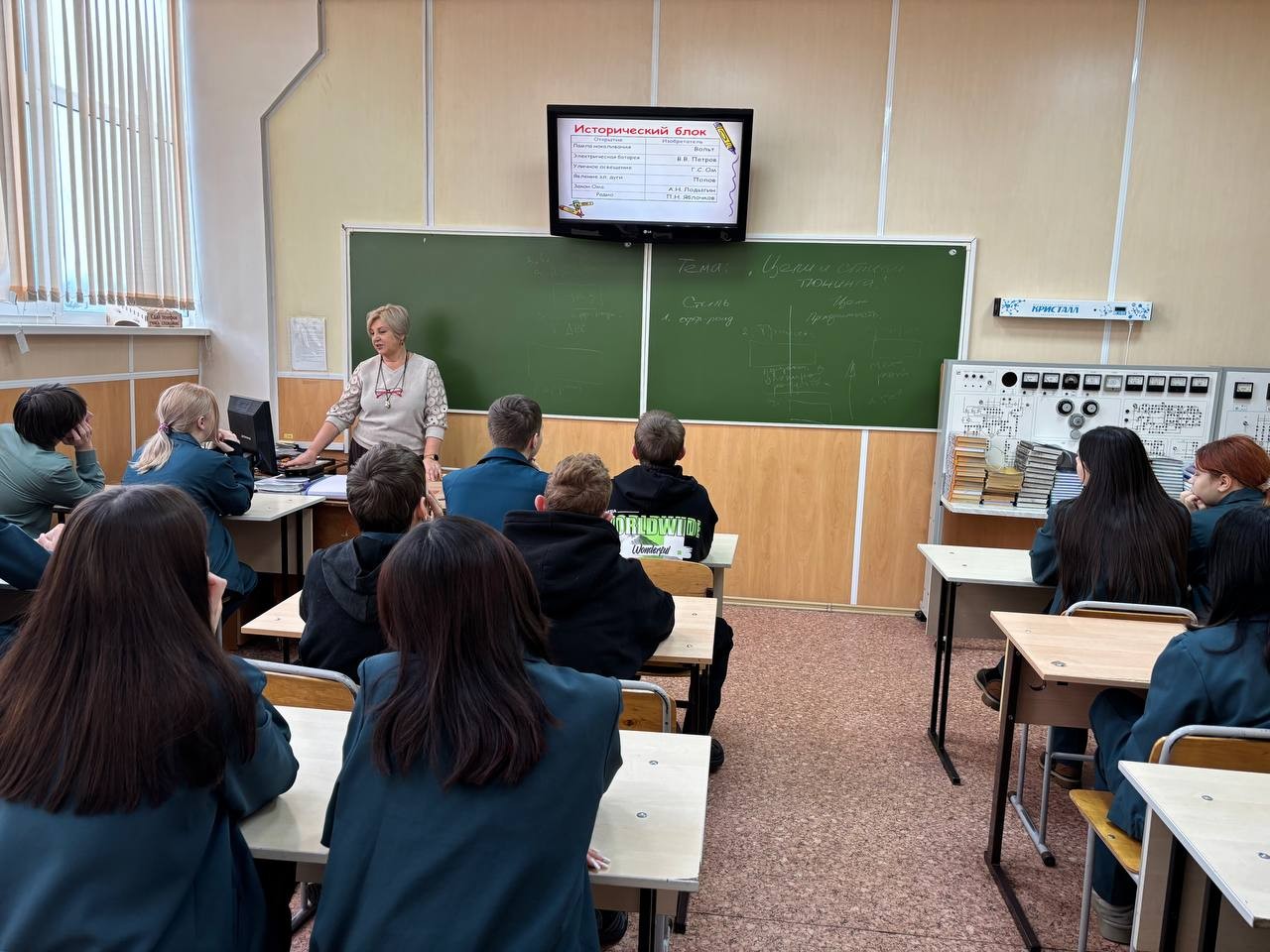 Одна из площадок была организована преподавателем Скворцовой М. А., которая познакомила учеников с профессией электрик.