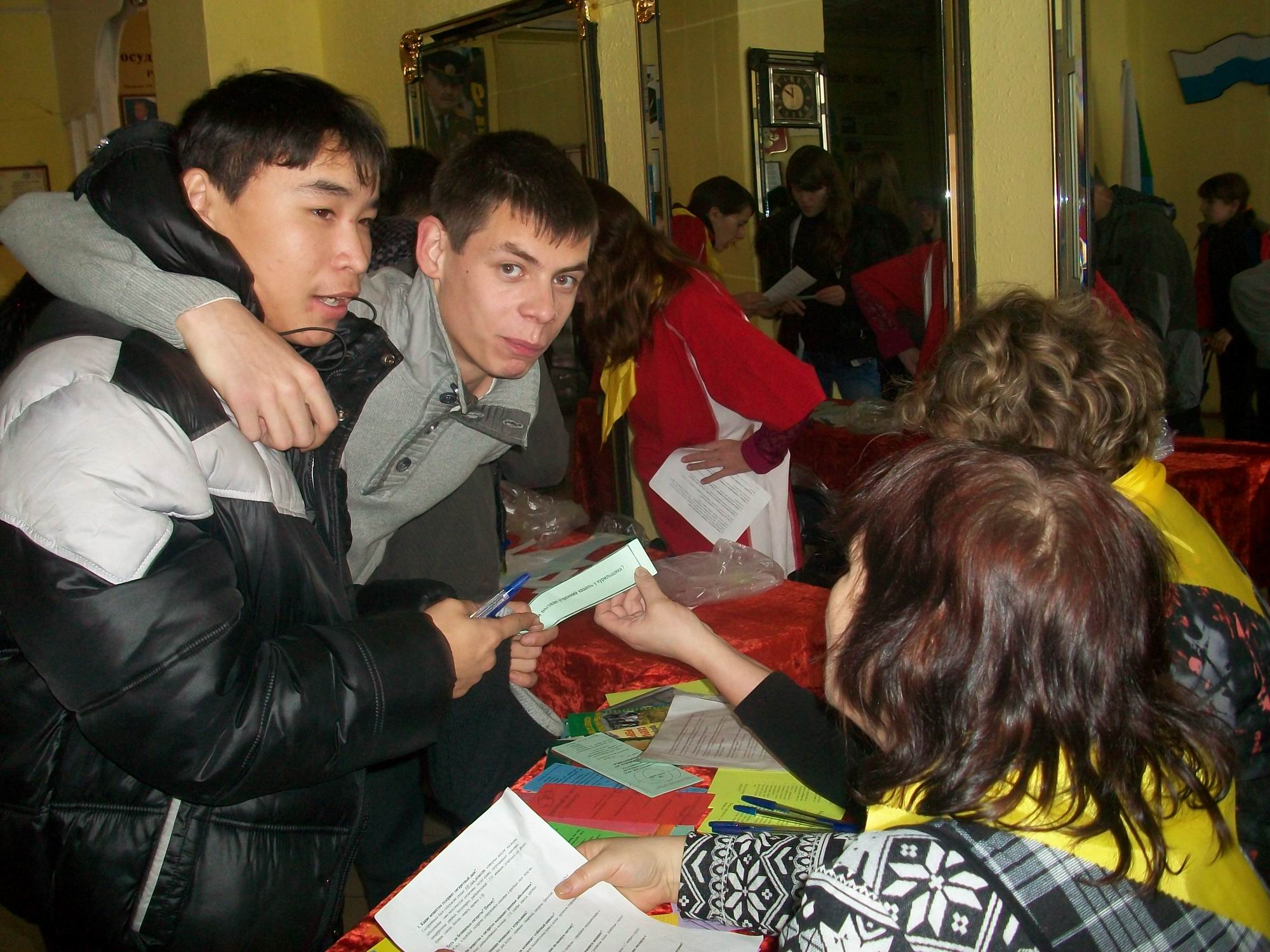 Возле информационной палатки раздавался смех и споры по поводу ответов на вопросы, а так же удивленные возгласы, когда узнавали ответы