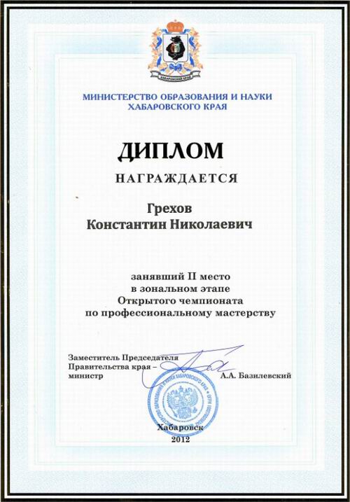 19 ноября 2012 года в Хабаровске прошел зональный этап Открытого чемпионата по рабочим профессиям « World Skills Russia - Дальний Восток»