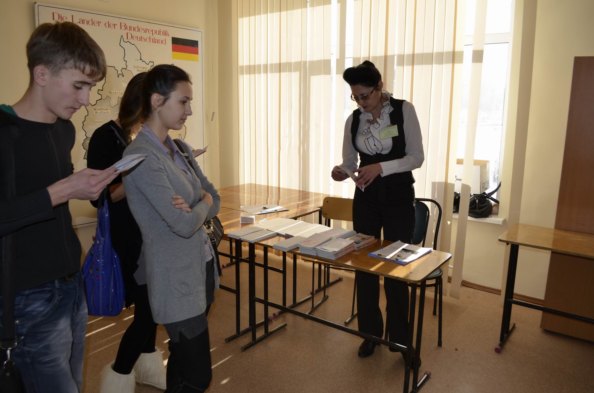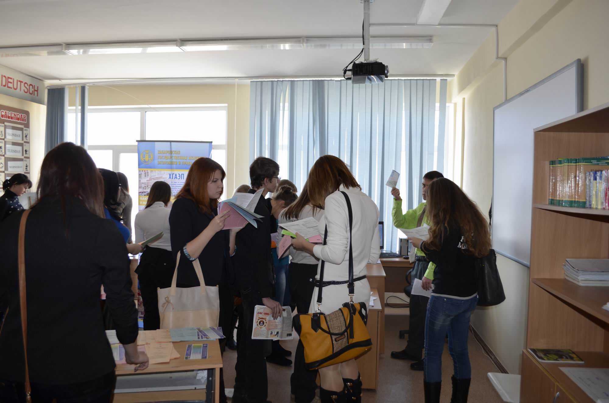 В течение часа школьники Амурска, Известкового и Ачана знакомились с презентациями учебных заведений высшего и среднего профессионального образования Хабаровска, Комсомольска и Амурска. Затем все разошлись по импровизированным «приемным комиссиям», где выпускники школ могли получить ответы на интересующие вопросы и взять рекламную продукцию ВУЗов и СУЗов для более глубокого ознакомления.