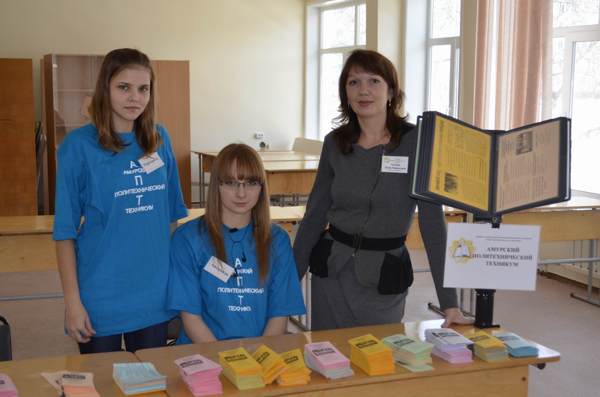 Благодаря сотрудникам техникума Г.П. Стиба, Н.А. Скрипаленко, Г.П. Обуваловой, М.Л. Новоселову, Н.В. Сай, А.В. Ерофеевой, Л.Н. Цукановой, В.А. Ерофеевой, Н.К. Ядыменко, Н.А. Федосеевой, Ю.Р. Гостевой, Н.А. Титовой, Е.В. Шестопалько, В.Б. Вдовенко, О.А. Шамовой, а также студенткам гр.206 БУ (к) под руководством Н.Б. Игнатенко все гости АПТ легко ориентировались в расположении аудиторий нашего учебного заведения.