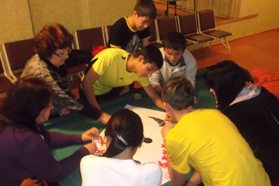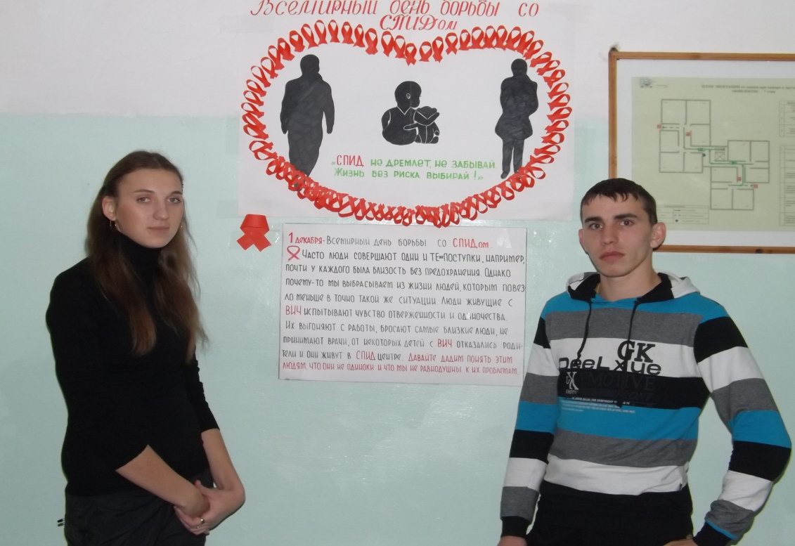 В общежитии № 1 Амурского политехнического техникума привлечь внимание к проблеме ВИЧ и СПИДа студенты решили нестандартным способом: в актовом зале зажгли свечи в виде красной ленточки и сидели в темноте, обсуждая как оформить уголок. Как известно, темнота – «друг молодежи» и увидев, что в зале потушен свет, все любопытствовали: а что это вы тут делаете? И совместными усилиями, получив информацию о Всемирном Дне борьбы со СПИДом, о красной ленточке, создали стенд. Все входящие в общежитие студенты слышали призыв: НЕ ПРОХОДИТЕ МИМО! Ребят поддержали воспитатели Л.В.Носкова, Л.Н.Яковенко