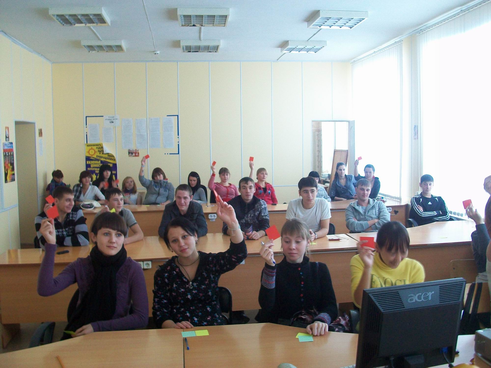Учащимися были предложены ситуации, где нужно правильно определить степень риска заражения СПИДом: высокий риск - красная карточка, средний риск - жёлтая карточка, нет риска – зелёная карточка. Ситуации бурно обсуждались, ставились под сомнение и старались найти правильные ответы.