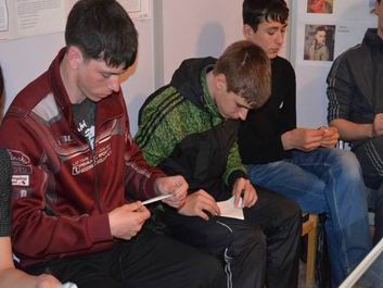 Студентам техникума было предложено смастерить эту незатейливую форму письма-треугольника. С большой увлеченностью и старанием ребята принялись изготавливать письма. Не сразу все у них получалось, но с небольшими подсказками ребята получили свои треугольнички.