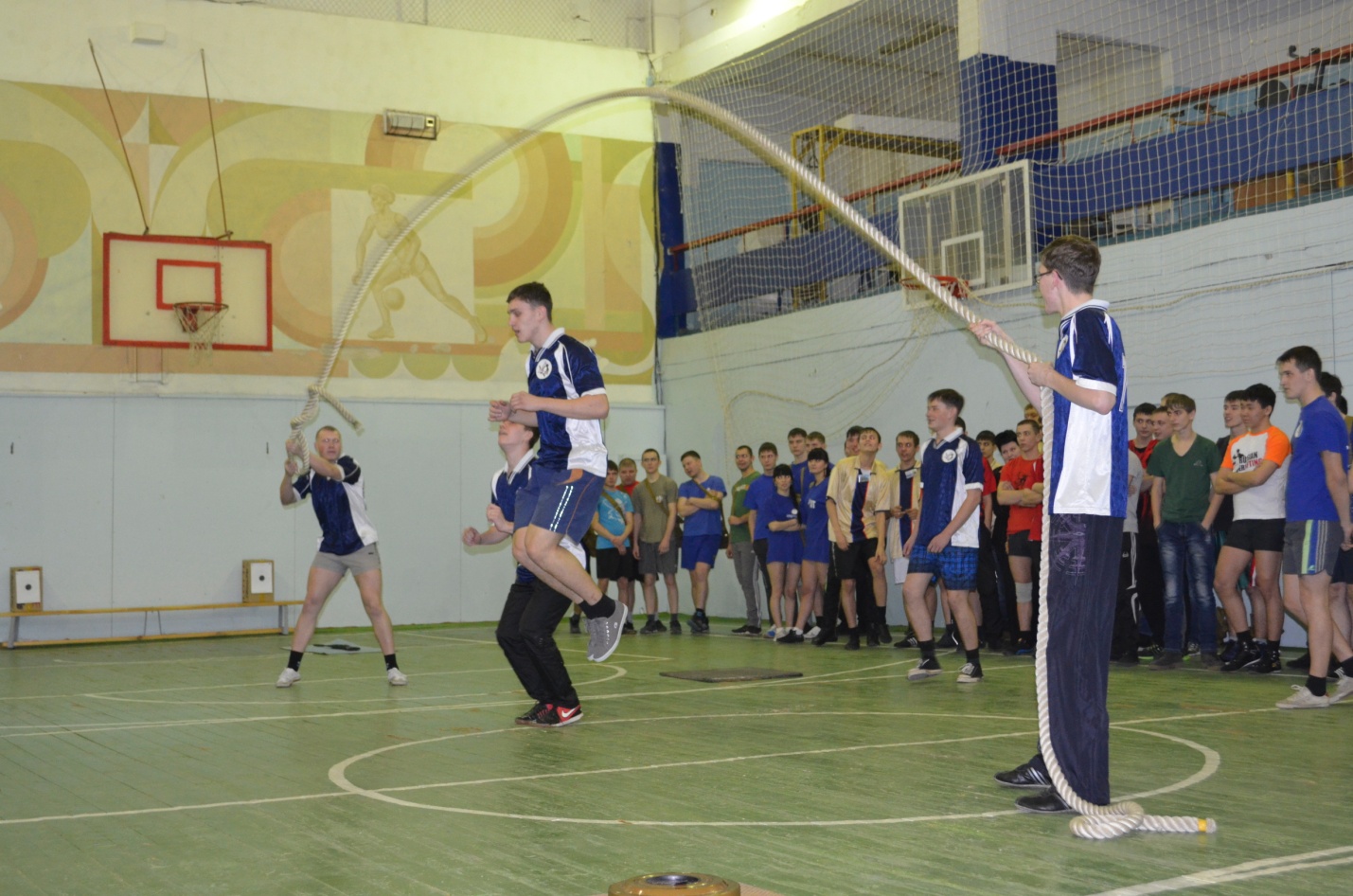2-е задание, называлось «Утренняя зарядка», проверялись физические качества ребят (прыжки со скакалкой, подтягивание на перекладине, прыжки через канат). Лучшими в этом виде были следующие команды: гр.408, гр.108, гр.205.
