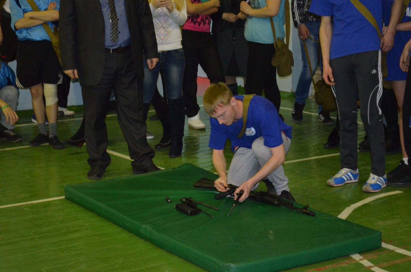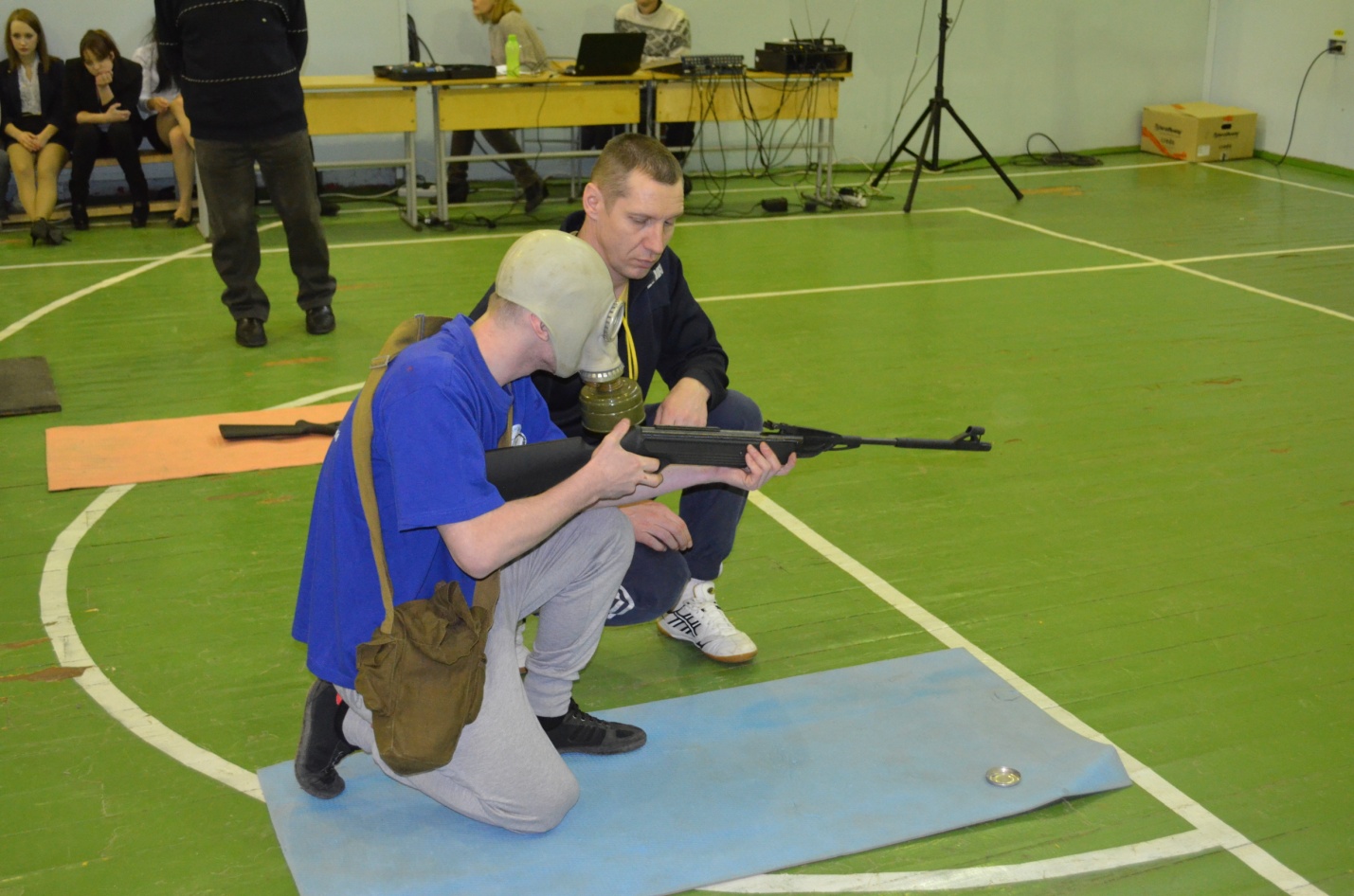 3-е задание – это военно-комбинированная эстафета. На этом этапе ребята показывали свои знания, умения и навыки в разборке и сборке АК-74, снаряжение магазина патронами, переноска противотанковой учебной мины, использовании средств индивидуальной защиты органов дыхания, пулевой стрельбы из пневматической винтовки в противогазе по мишени. В эстафете места распределились следующим образом: ст. подгруппа 1-е место гр.408, 2-е место гр.301; мл. подгруппа – 1-е место гр.108, 2-е место гр.115, 3-е место гр.215.
