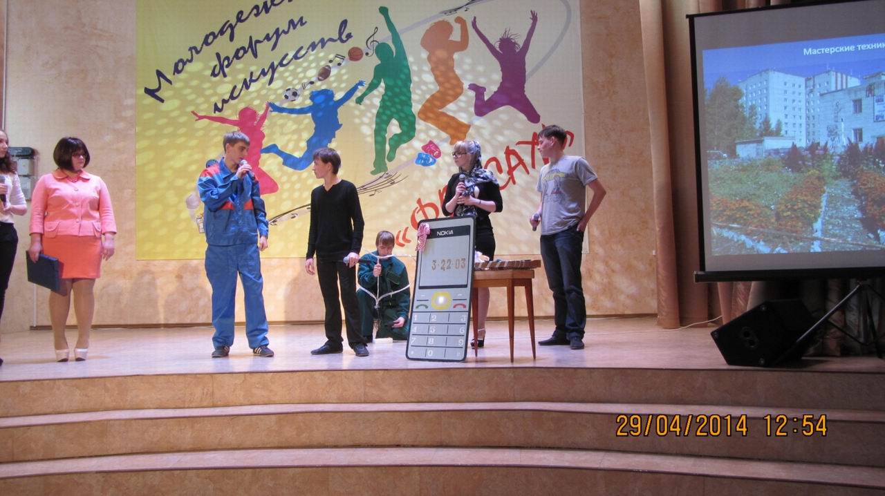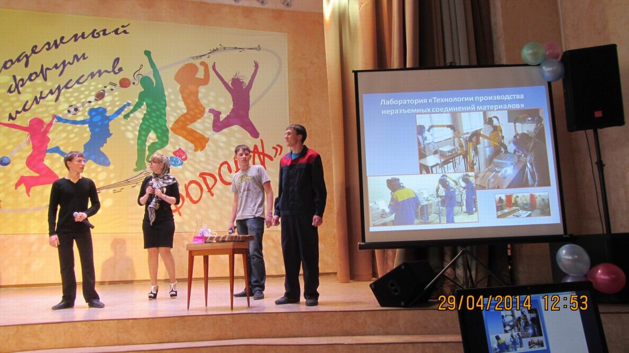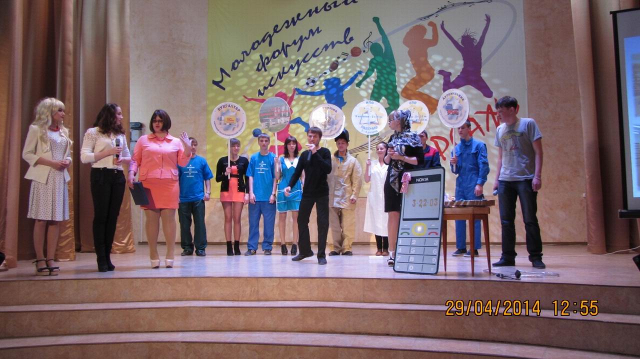 29 апреля 2014 года ребята студии театральных миниатюр «Каламбур» под руководством педагога дополнительного образования Н.В. Блохиной приняли участие в краевом конкурсе агитбригад «Я и моя профессия!». Это был отборочный тур, в зале присутствовали только члены жюри. Мы в списке конкурсантов были первыми, а вообще в этот день свои профориентационные агитбригады показывали 11 техникумов Комсомольской территории (включая п.Солнечный и г.Амурск). свою агитбригаду наши ребята отыграли чисто, ярко, но очень не хватало поддержки зрительного зала.