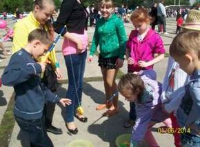 Художники (маленькие, и не очень) рисовали мелом на асфальте, сами и с помощью родителей, принимали участие в различных конкурсах, а так же с азартом играли в различные игры, предложенные волонтёрами. Социальный педагог В.В. Кузьменко, воспитатель общежития О.В. Кащеева и студент Зыков Анатолий организовали две игровые площадки: «Рыбалка» и «Кольцеброс», а преподаватель физкультуры Е.В.Макарова – «Боулинг». Игры наши пользуются неизменным успехом у малышни уже не первый год.