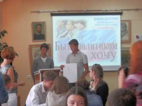 10 сентября в преддверии предстоящих выборов в Законодательную Думу Хабаровского края в Центральной библиотеке г. Амурска состоялась молодежная правовая игра «Быть политиком хочу!», в которой приняли участие учащиеся школ города, техникума. Наше учебное учреждение представляли команды: «СПАМ» и «МВД». Игра состояла из восьми этапов, в ходе которых ребятам предстояло образовать и представить свою политическую партию, составить ее программу, придумать и нарисовать ее логотип, создать агитационную листовку, сочинить лозунг, разгадать кроссворд , ответить на вопросы, решить конкретную проблемную ситуацию. В ходе игры ребята побывали в роли политиков, вспомнили историю парламентаризма, показали знание законодательства.