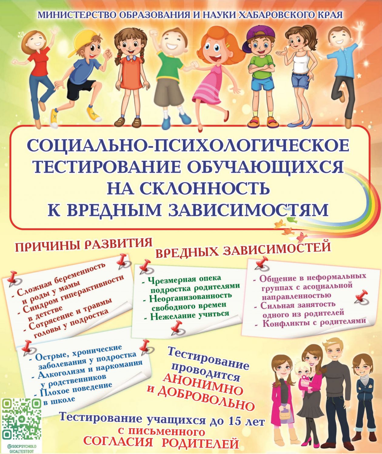 С 2013 года во всех образовательных организациях Российской Федерации проводится социально-психологическое тестирование (СПТ). СПТ позволяет оценить процесс становления личности. Нормальное взросление и развитие – это достижение поставленных целей, получение образования и выход в самостоятельную жизнь. Однако этот процесс может нарушаться. СПТ позволяет вовремя заметить возникающие проблемы и предложить своевременную помощь подростку и его семье.